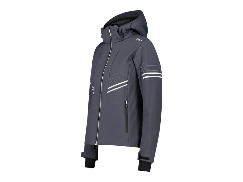 Een sportieve en warme ski jas van CMP. Deze jas is gemaakt van softshell materiaal met een warme voering. De jas heeft aan de voorzijde 2 afsluitbare zakken en heeft in de mouw een zakje voor een skipas. De jas heeft een afneembare capuchon en een sneeuwvanger. De CMP jas 32W0226 is wind en waterdicht tot een waterkolom van 8.000 mm De ClimaProtect technologie zorgt voor ademend vermogen en volledige bescherming tegen wind en regen.