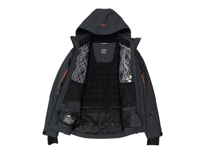 Deze mooie en warme jas heeft aan de voorzijde twee afsluitbare zakken en in de mouw een zakje voor een skipas. De jas heeft een afneembare capuchon en een vaste sneeuwvanger. Verder heeft de jas een binnenzak voor diverse doeleinden. De ski jas heeft een ademend vermogen van 5.000, is wind en waterdicht met een waterkolom van 10.000. De naden zijn getaped. De ski jas 39W1517 van CMP is goed te combineren met skibroek 39W1537 red orange van CMP