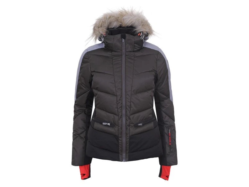 Deze mooie en warme ski jas heeft aan de voorzijde twee afsluitbare zakken en heeft in de mouw een zakje voor een skipas. De jas heeft een afneembare capuchon en een vaste windvanger. Het jack is wind- en waterdicht. De ski jas Electra 598 van Icepeak is goed te combineren met de softshell broek Outi van Icepeak.